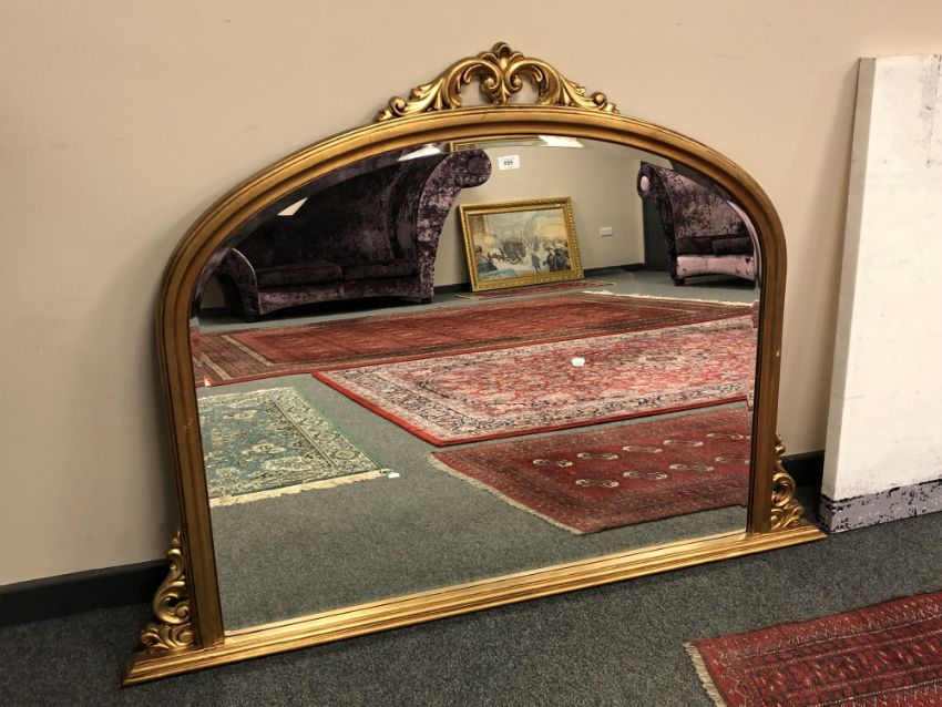A Victorian style over mantel mirror, 144cm by 105cm.