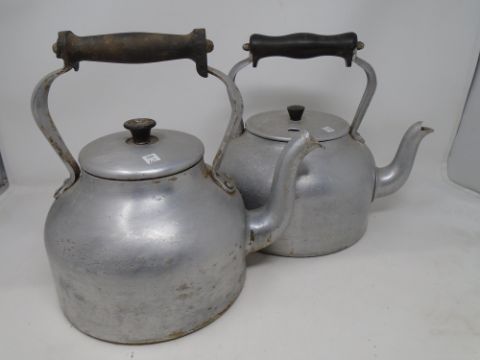 Two stainless steel kettles.