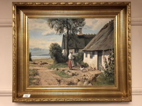 Niels Walsath : Rural cottage by a lake, oil-on-canvas, in gilt frame, 38cm by 48cm.