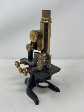 An early 20th century E Leitz Wetslar No. 146084 microscope in box