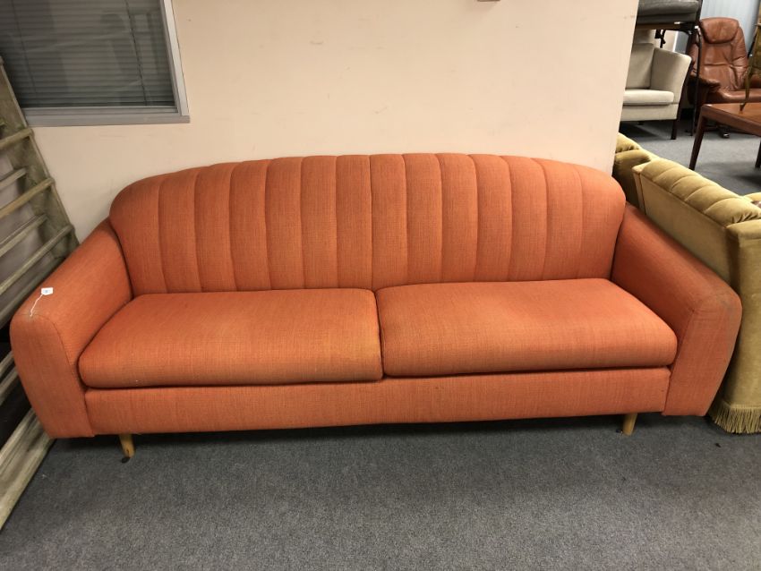 A 20th century continental settee in orange fabric
