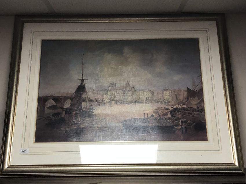 A print after John Wilson Carmichael : The Mayor's Barge, in frame and mount.