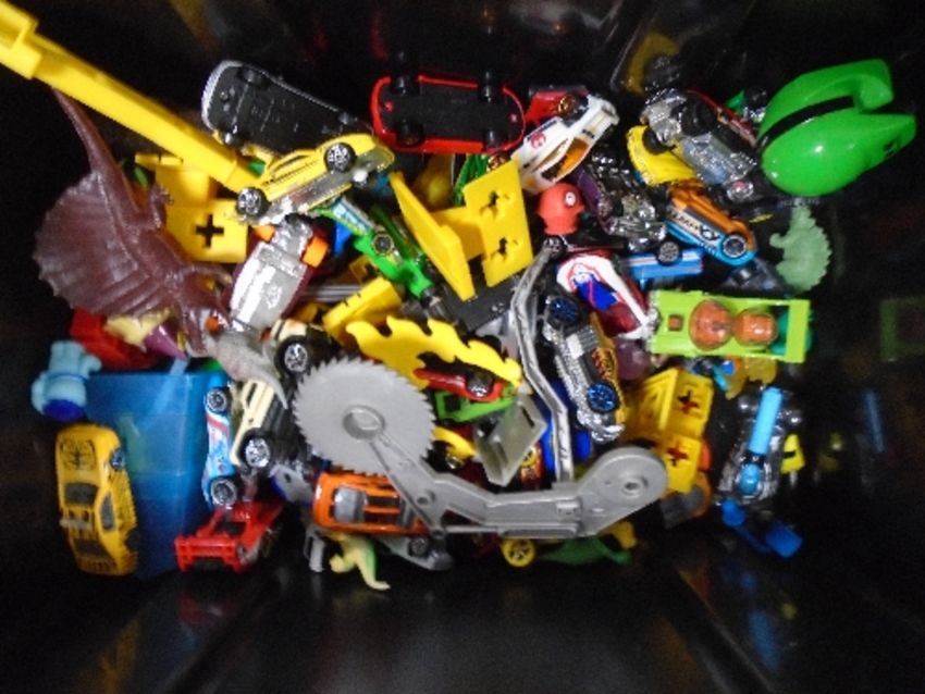 Two boxes containing plastic Hotwheels and other track, together with die cast cars.