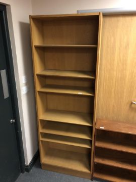 A set of 20th century oak-effect Scandinavian shelves, width 70 cm