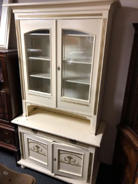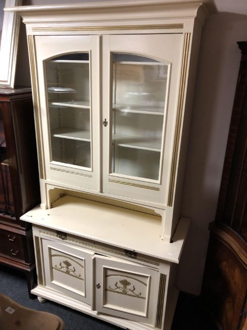 A 19th century painted glazed double door bookcase fitted with cupboards and drawer beneath.