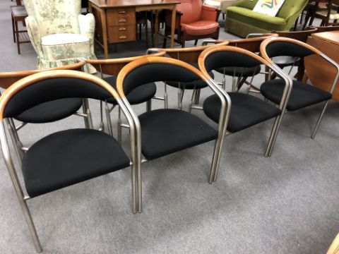 A set of four Sorensen contemporary armchairs on tubular metal legs