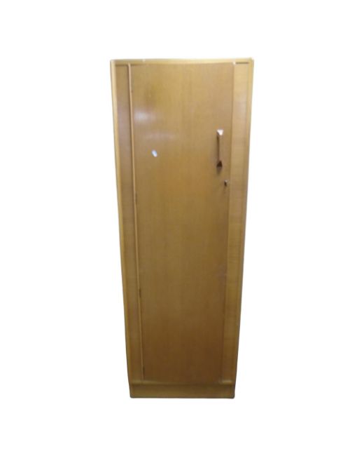 A four piece mid century G-Plan E Gomme light oak bedroom suite comprising of two double door wardrobes, dressing table and sentry door wardrobe