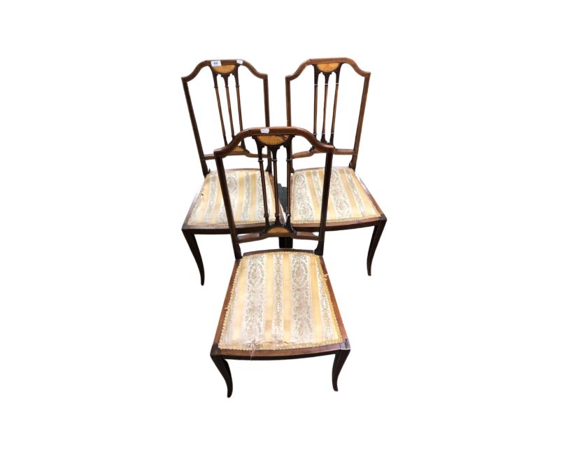 A set of three 19th century inlaid mahogany bedroom chairs.