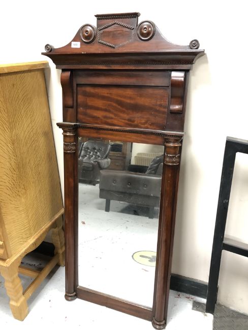 A 19th century mahogany hall mirror with pillar supports, height 131 cm