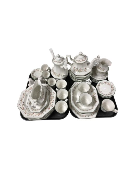 Two trays containing a quantity of Johnson Brothers Eternal Beau tea and dinner ware.