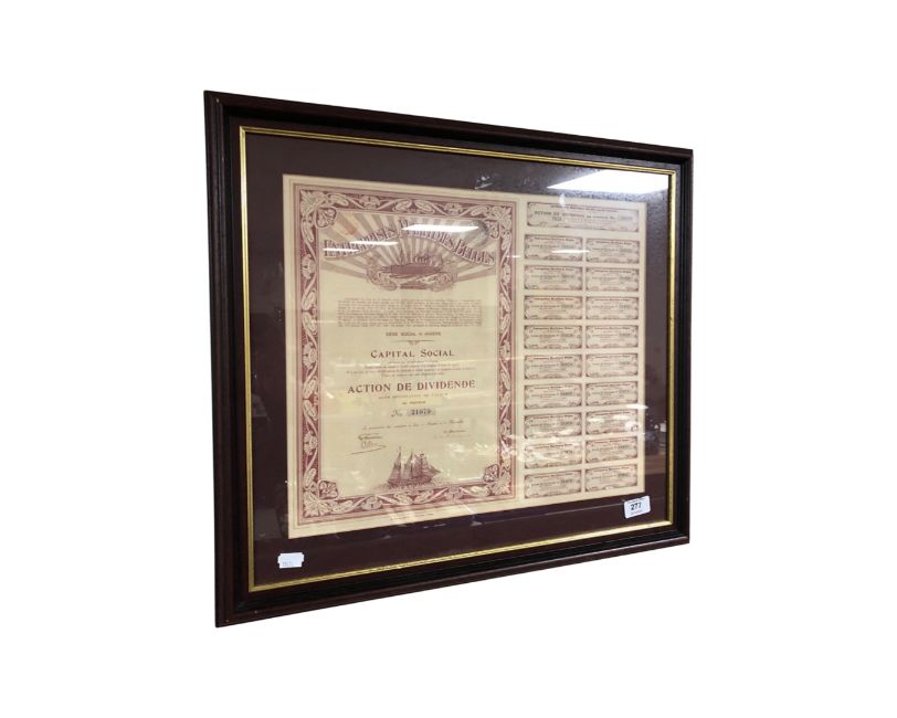 An early 20th century Belgium maritime dividend in frame and mount