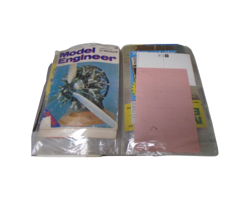 An album of assorted newspaper cuttings, football programmes, model engineering magazines, stamps etc