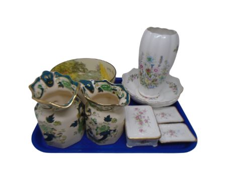 A tray of two Mason's jugs, a Royal Doulton Greenwood Tree series bowl, further Aynsley china etc.