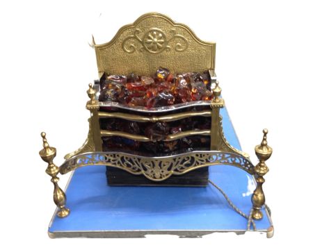 A brass electric fire with glass coals.