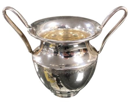 A Sterling silver twin handled miniature cup, 56.4g, height 7.5 cm.