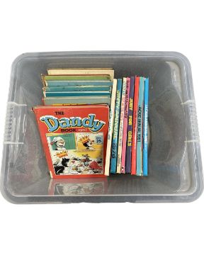 A box of annuals including The Dandy, Jackie, Bunty etc.
