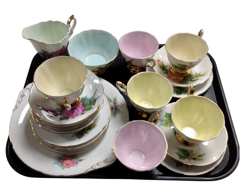 A Paragon 21 piece Six World Famous Roses bone china tea set.