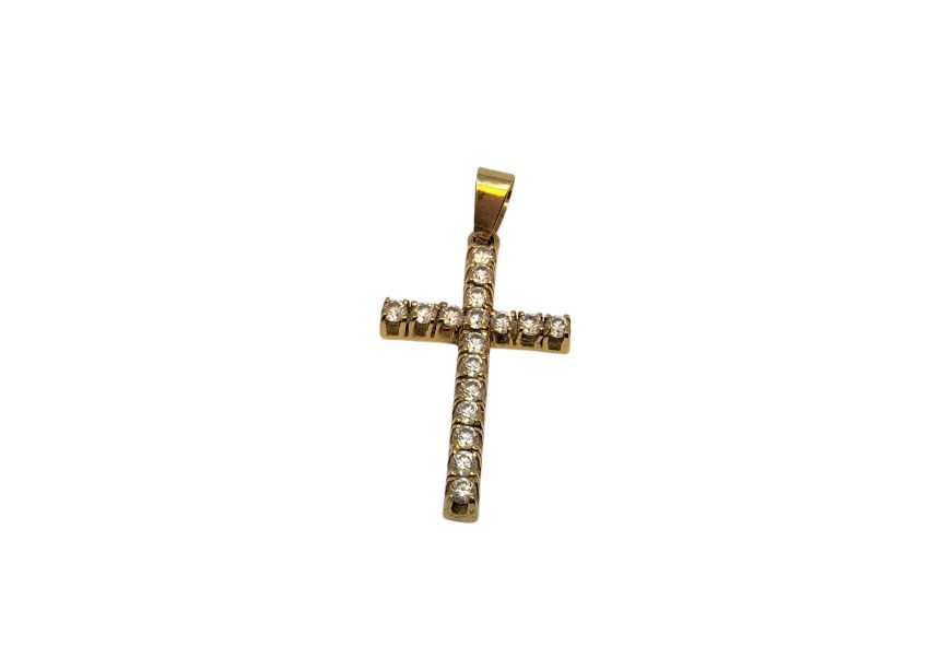 An 18ct yellow gold diamond cross pendant, the seventeen diamonds approximately 0.6ct.