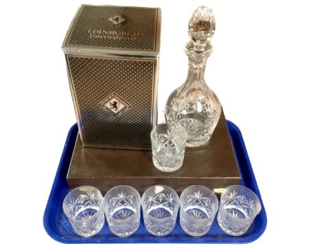 An Edinburgh Crystal hand cut decanter with stopper together with six Webb crystal whisky glasses. (both parts boxed)