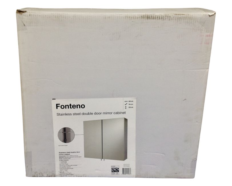 A Fonteno stainless steel double door bathroom cabinet, boxed.