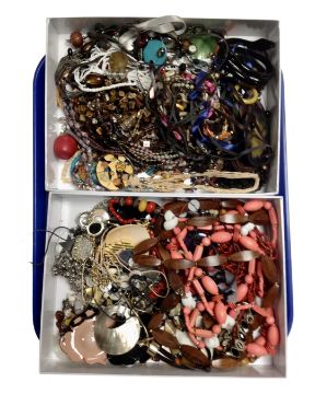 Two boxes containing a quantity of assorted costume jewellery.