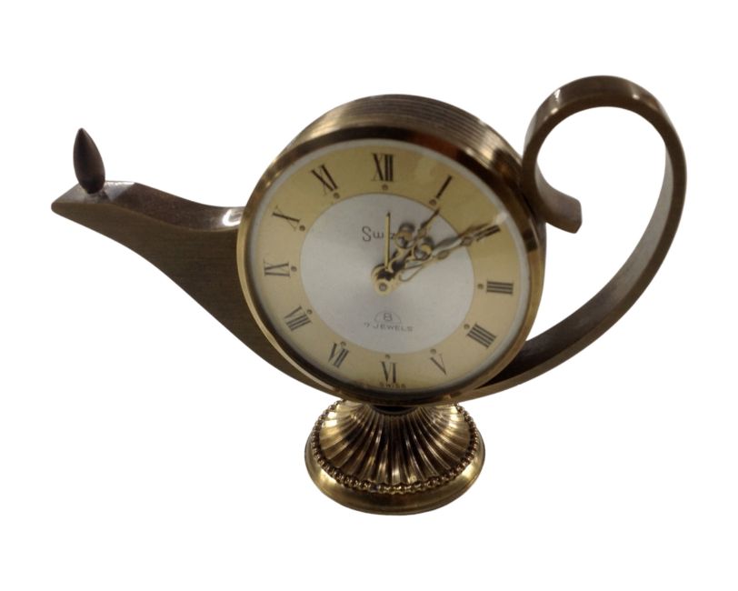 A Swiza seven jewel lamp alarm clock.