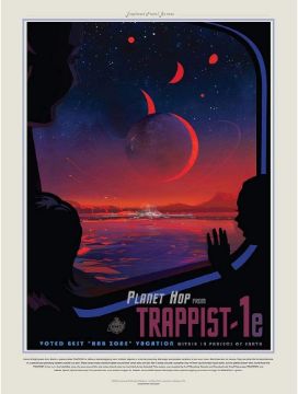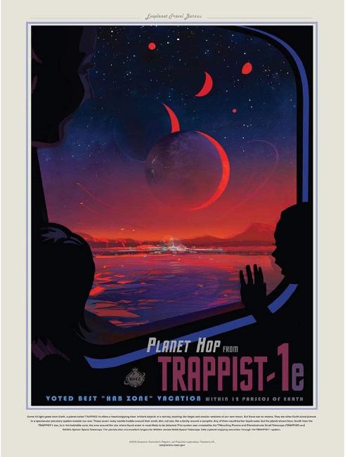 NASA posters - Planet hop from Trappist - 1e, and Mars Explorers wanted, along with photos of fighter jets.