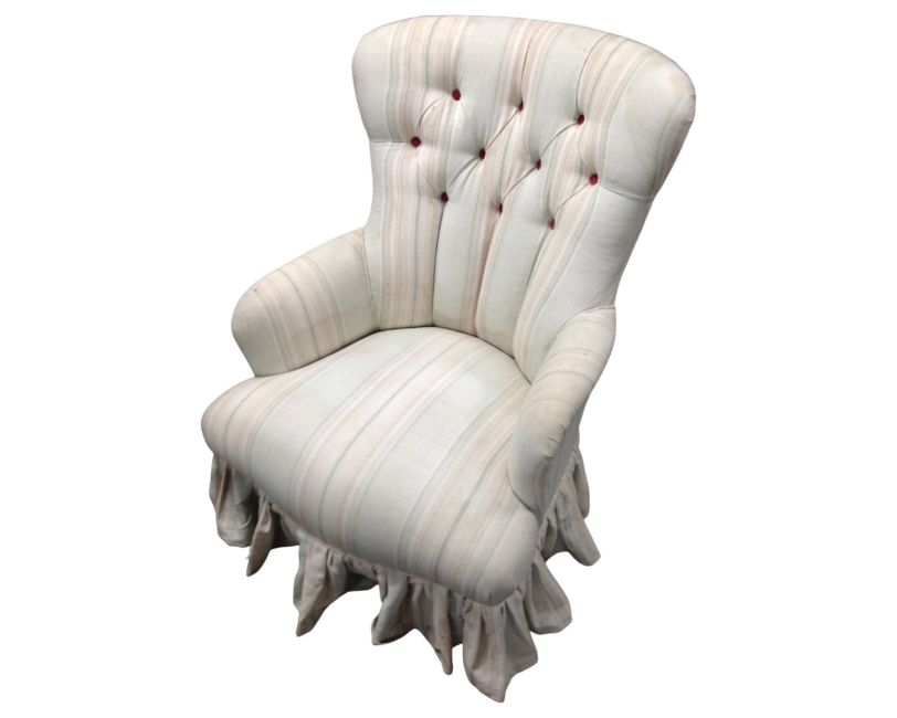 A Victorian style lady's chair in striped buttoned fabric