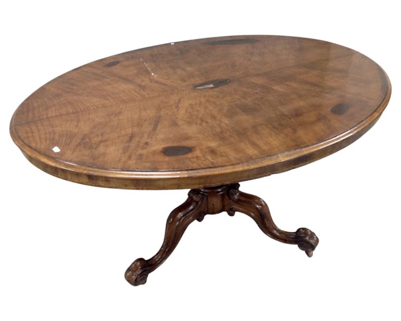 A Victorian oval mahogany tilt top pedestal breakfast table.
