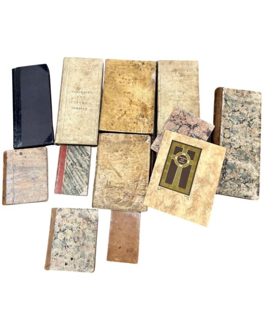 An interesting group of early 18th century and later books including several account books bound in vellum relating to the Company of Merchants and Tailors, a New Testament published 1813, A Year Book and Blotter from St. Mary's Church Morpeth dated 1938. (Qty)