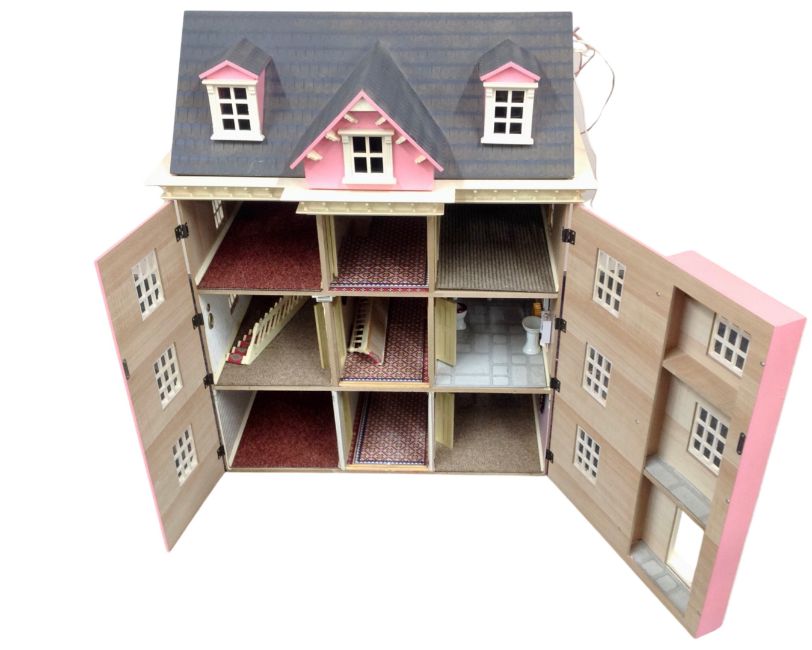 A Georgian style doll's house together with a box of doll's furniture and dolls