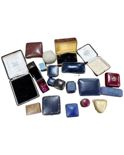 A quantity of mostly vintage ring boxes and other jewellery boxes.