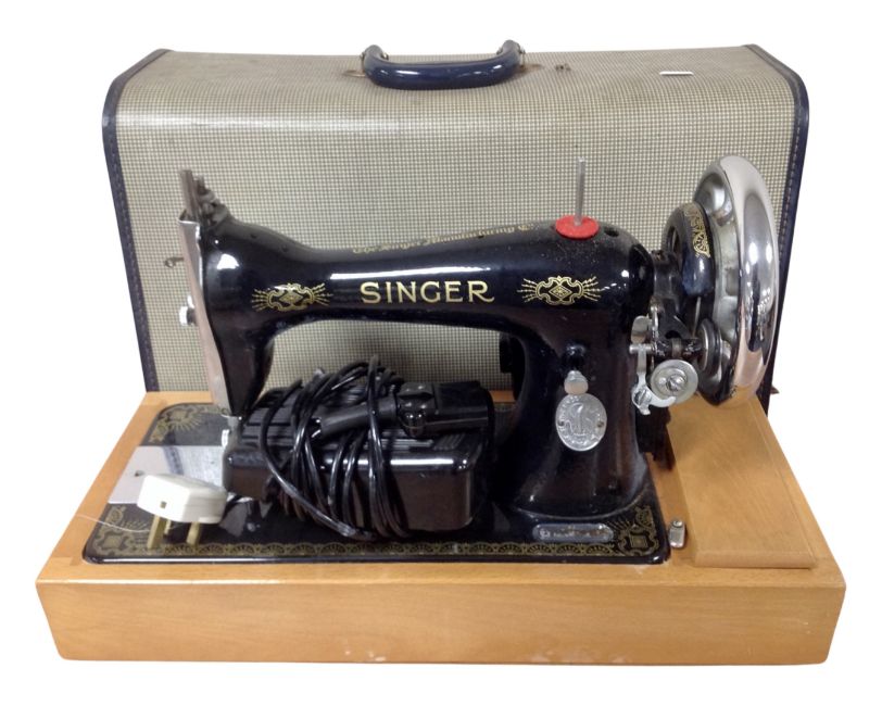 A vintage 20th century Singer electric sewing machine in case.