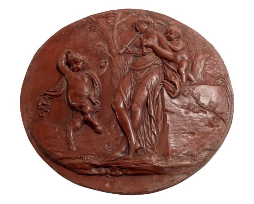 A relief wall plaque depicting Pan dancing, after Bouchardon.