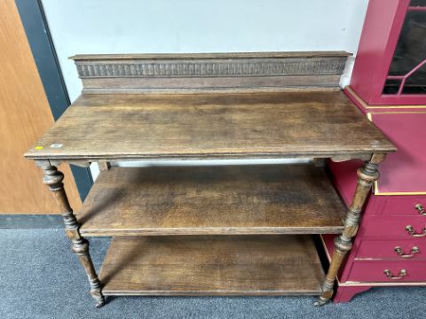 A 19th century oak three tier dumbwaiter. 116 cm x 121 cm x 53 cm
