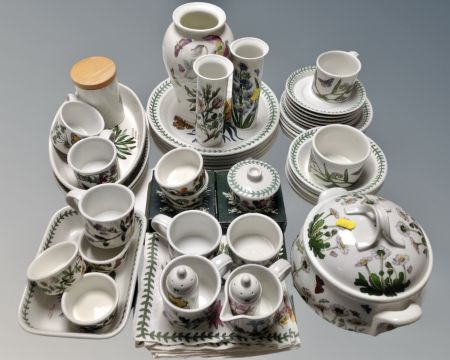 An extensive Portmeirion tea and dinner service, matching napkins and place mats, ramekins and vases