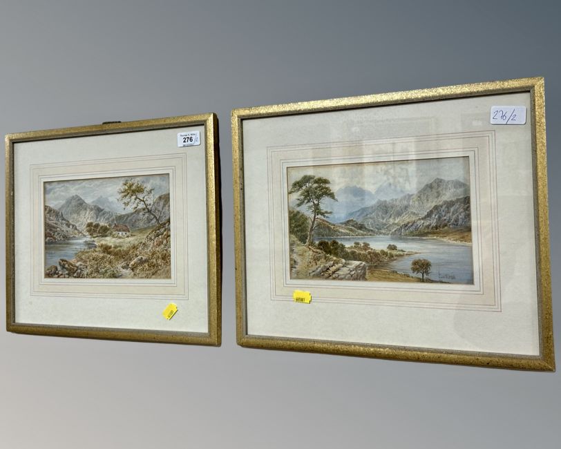 John Wilson Hepple (1886 - 1939) : A Thatched Cottage by a Lake with Mountains Beyond, watercolour, signed, 16 cm x 24 cm, together with the companion piece, framed as a pair. (2)