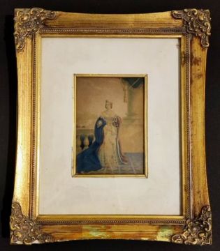 George Baxter 1843 antique print of Queen Victoria in antique frame