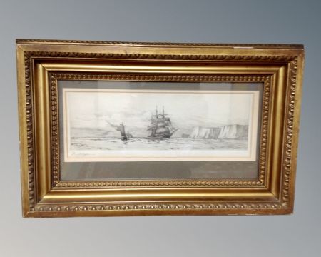 Harold Wyllie : Drypoint etching of boats approaching Dover, signed in pencil, 36cm by 13cm