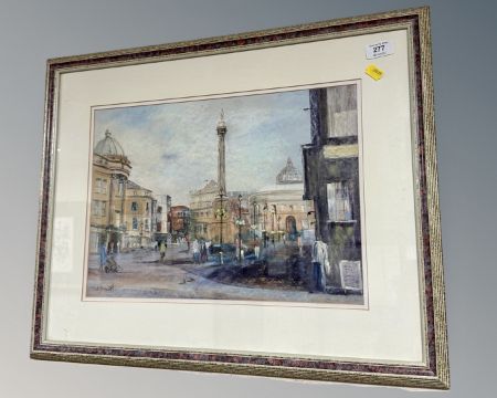 J. D. Scott : Grey's Monument, Newcastle Upon Tyne, colour chalks, signed in pencil, 31 cm x 44 cm, framed.