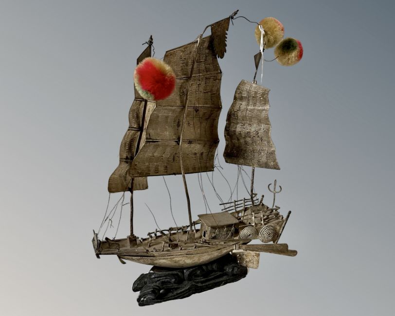 An antique Chinese white metal junk, height 27cm