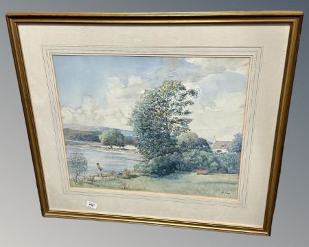 John Taylor (20th Century) : Female figure by a lake, watercolour, in frame and mount, 57 cm by 47 cm.