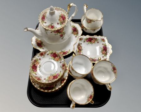A collection of 22 pieces of Royal Albert Old Country Roses tea china.