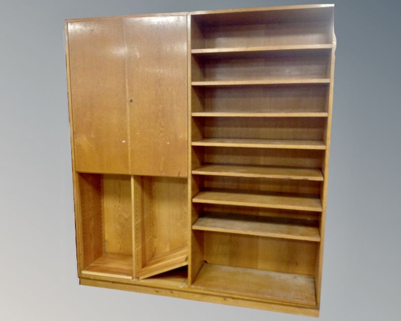 A 20th century school bookcase fitted with double door cupboard (width 180cm)