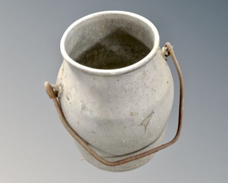 A vintage aluminium cast iron handled milk churn.