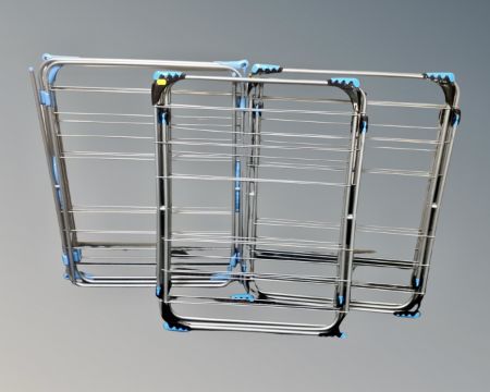 Three folding clothes airers.