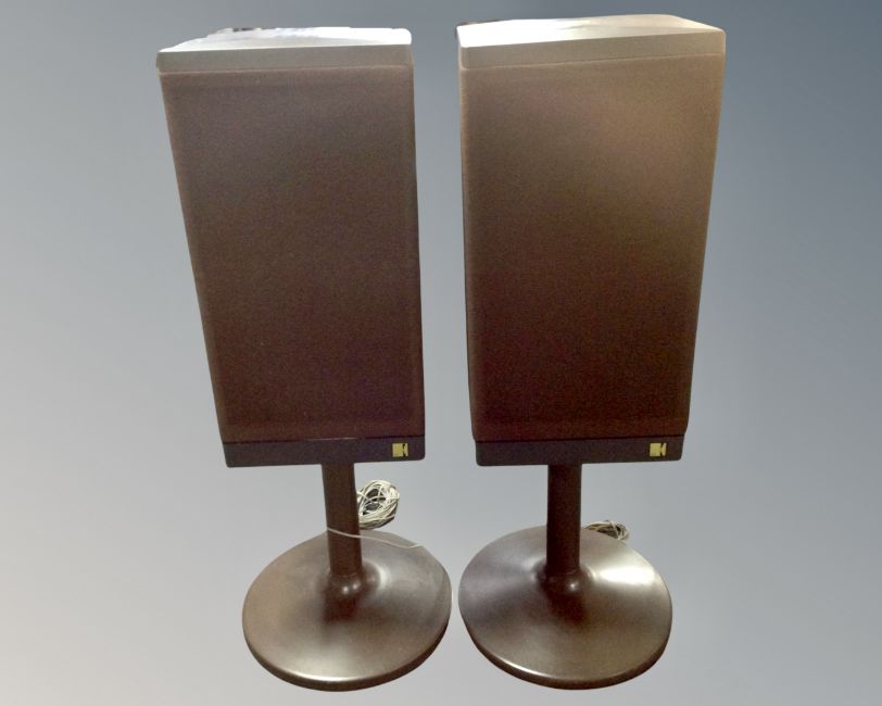 A pair of Kef Celeste IV speakers on stands, Aiwa turntable and a Harman / Kardon AV1 100 amplifier