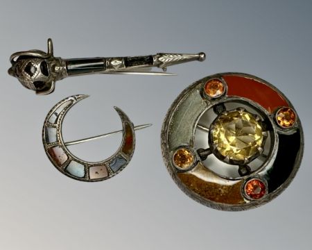 Three Scottish silver brooches set with agate.