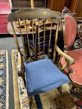 A beech wood spindle back rocking chair.