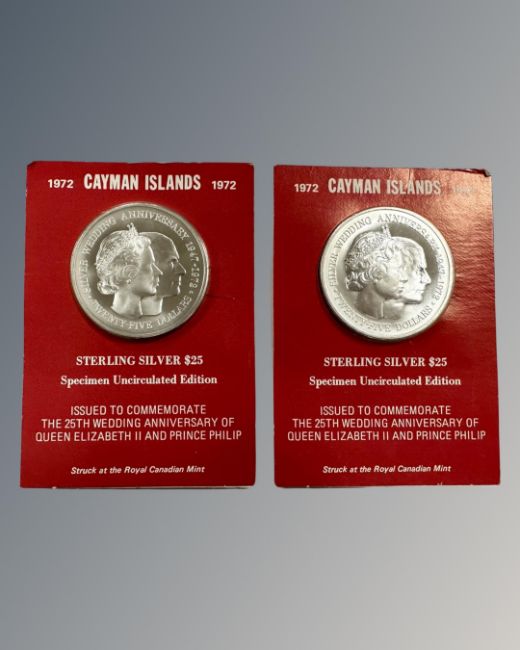 Two Sterling silver $25 dollar Cayman Island 1972 commemorative coins. (2)